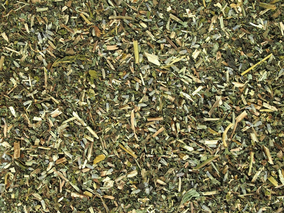 mučenka, listy meduňky, květy levandule, listy máty peprné