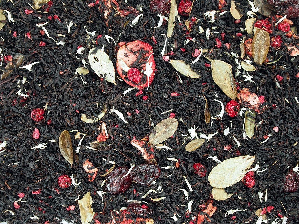 Pravý černý čaj, klikva velkoplodá (kanadská brusinka) (klikva, cukr, slunečnicový olej), aroma, jahody, červený rybíz, maliny, listy brusinky, chrpa. Může obsahovat stopy skořápkových plodů. Výživové údaje na 100 ml: energetická hodnota 18 kJ/ 4 kcal, tuky 0 g (z toho nasycené mastné kyseliny 0 g), sacharidy 0 g (z toho cukry 0 g), bílkoviny 0 g, sůl 0.03 g.