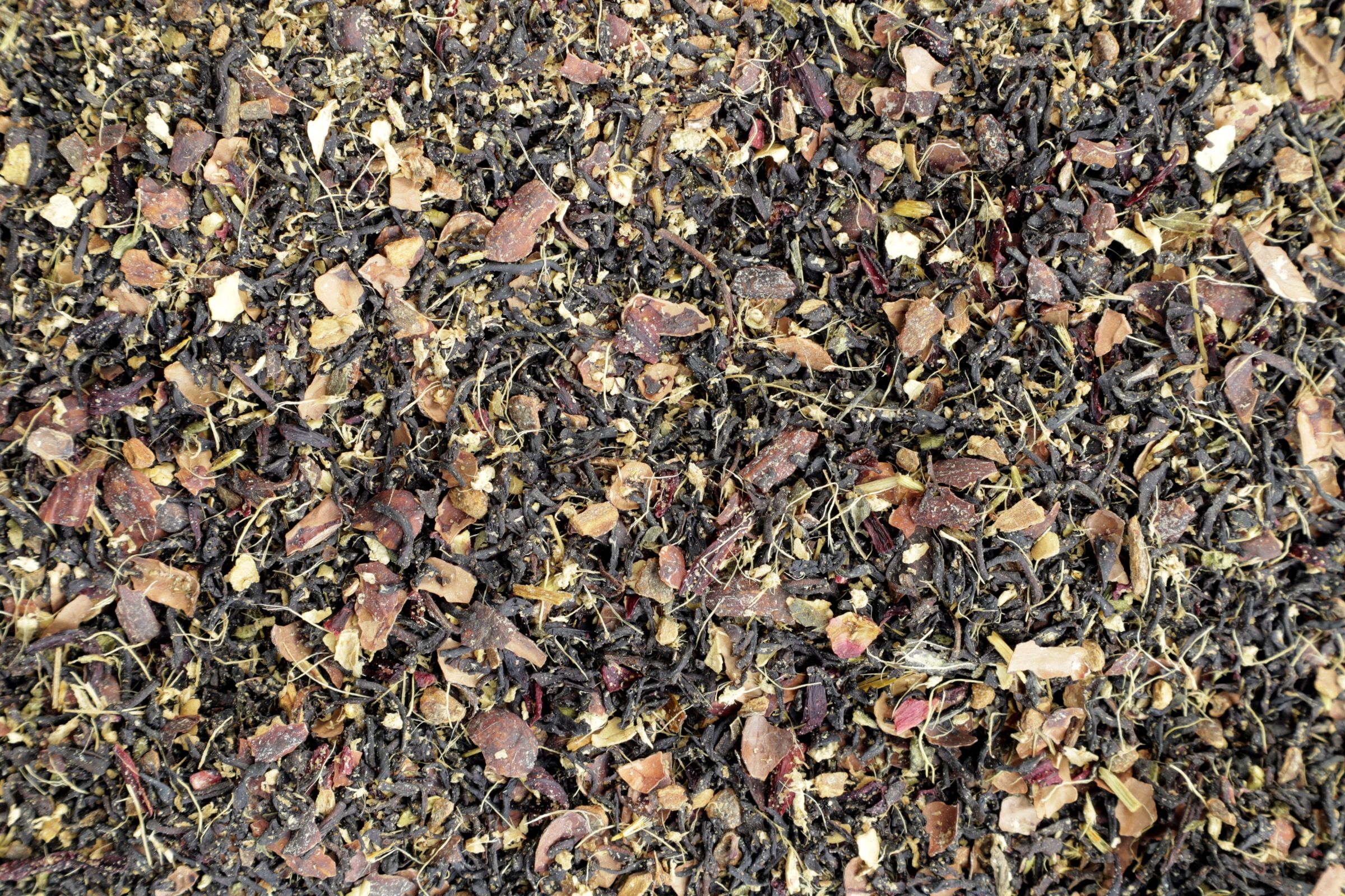 černý čaj, cukr z kokosových květů (15 %), kakaové skořápky (10 %), přírodní kokosové aroma, ibišek, zázvor, skořice, listy stévie, přírodní karamelové aroma, přírodní kakao-hořké mandlové aroma.