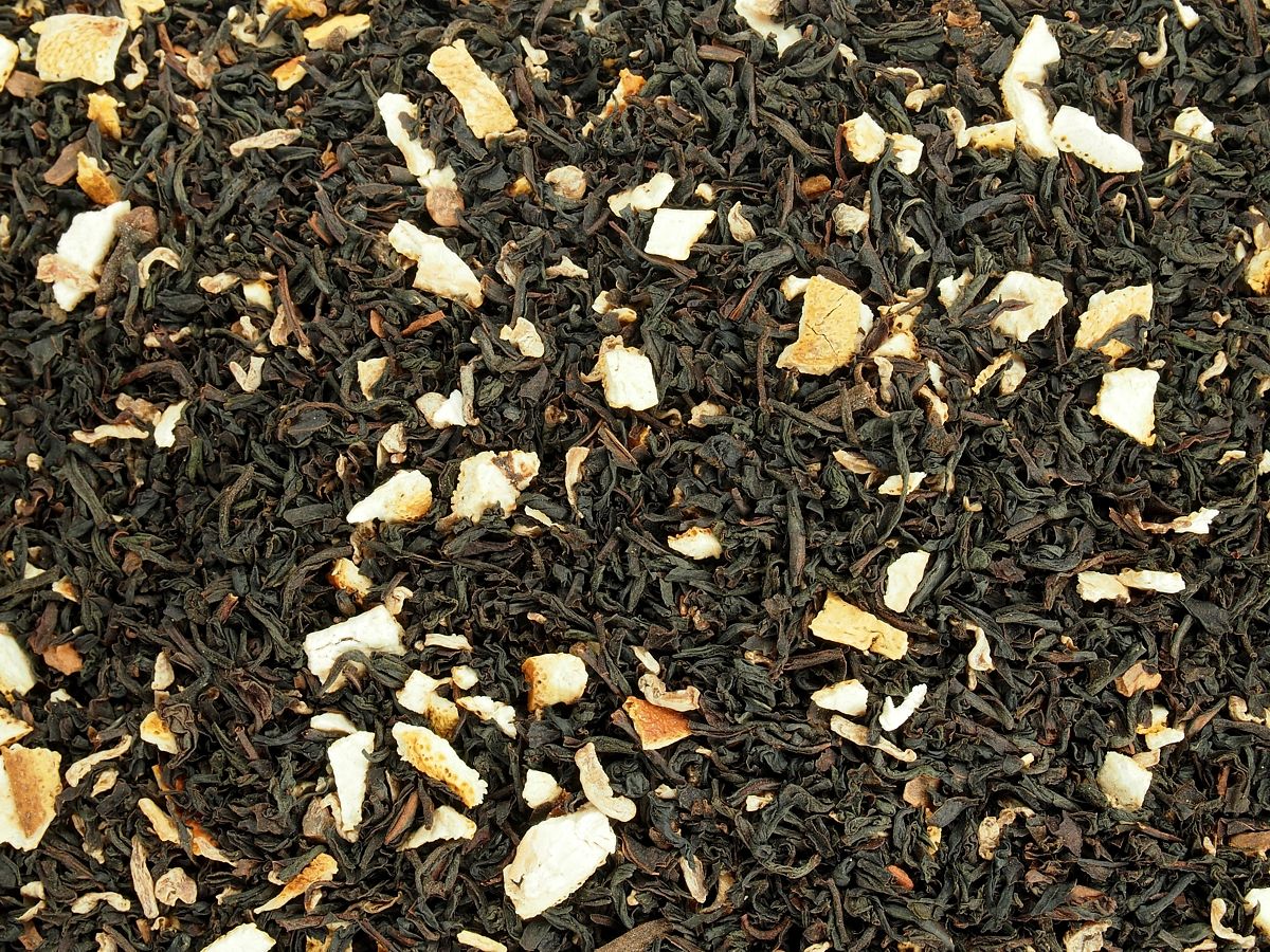 pravý černý čaj, pomerančová kůra 11 %, přírodní aroma, citrónová kůra, skořice čín. kůra 2,4 %, hřebíček 1,8 %