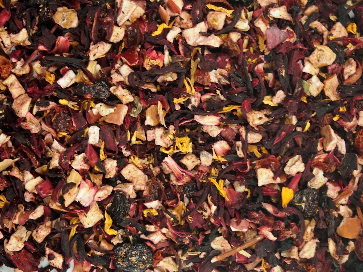 ibišek súdánský květ, jablka, šípek, višeň plod (8 %), slunečnice květ, přírodní aroma.