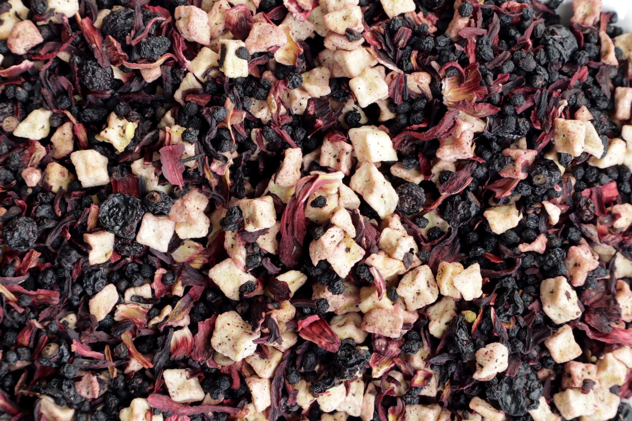 Do této kořenky se vejde až 150 g ovocného čaje s černým rybízem