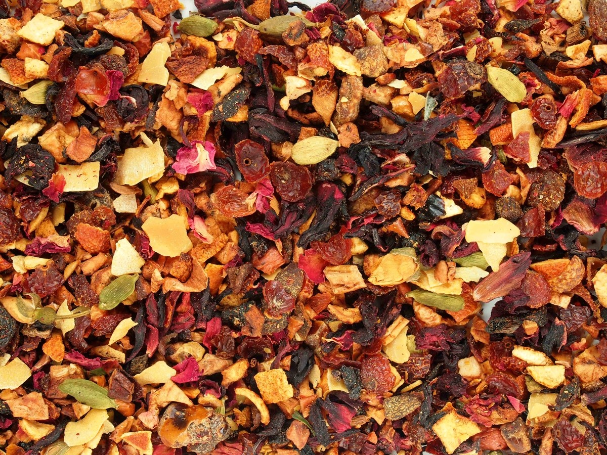 Tento ovocný vánoční čaj vás zahřeje a přenese do kouzelné atmosféry Vánoc díky své bohaté směsi plné sladkého ovoce a jemného koření. Základem čaje jsou kousky jablek, ibišek a šípek, které dodávají nápoji plnou a ovocnou chuť. Pomerančová kůra, rozinky, datle, meruňky, švestky a fíky přidávají sladkost a vrstvy chutí, které spolu s kokosem a lékořicí vytvářejí lahodný základ plný svátečního kouzla.