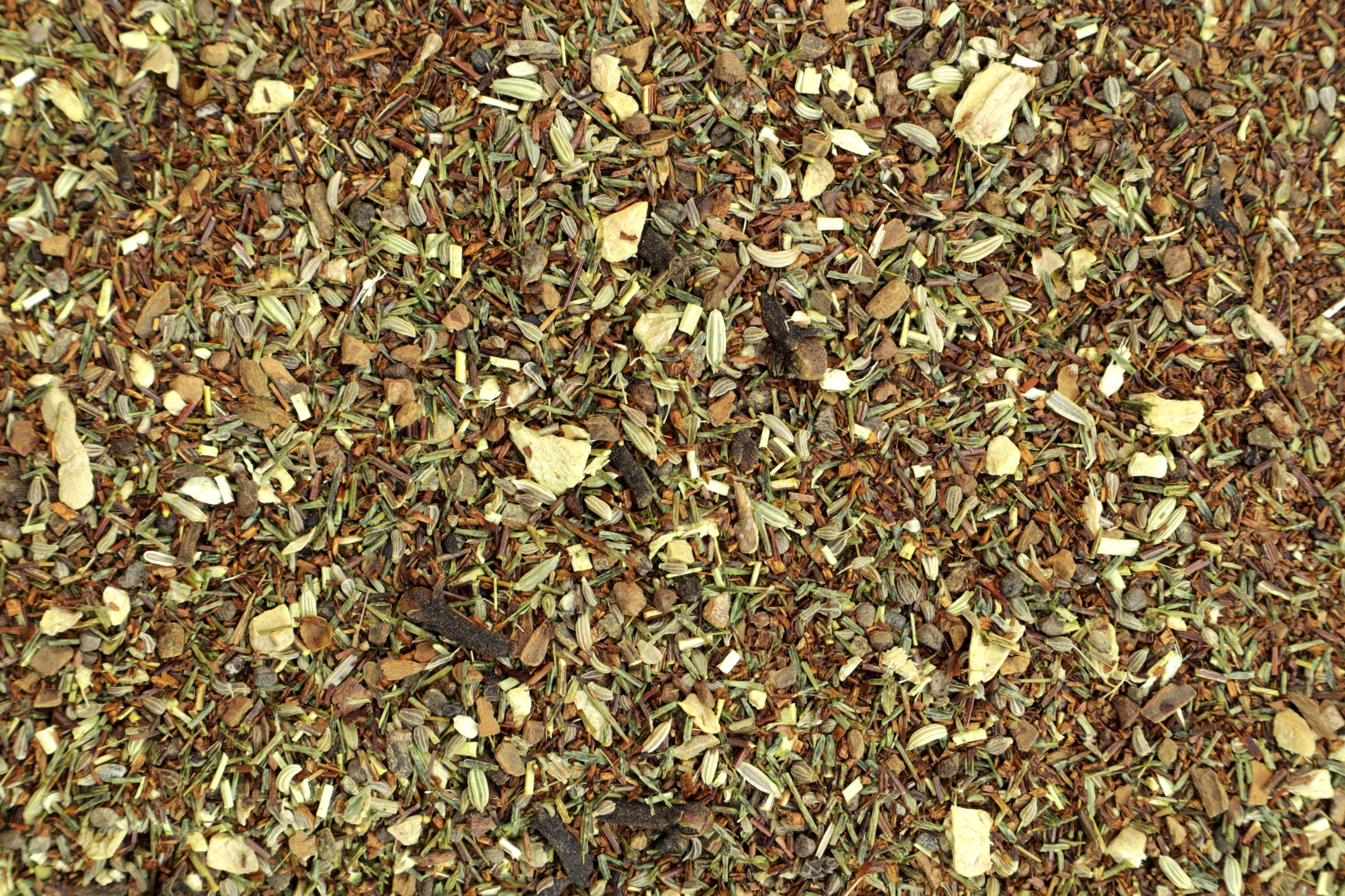 Rooibos (32,5 %), zelený rooibos (18,2 %), skořice, anýz, zázvor, kardamom, hřebíček, fenykl, černý pepř