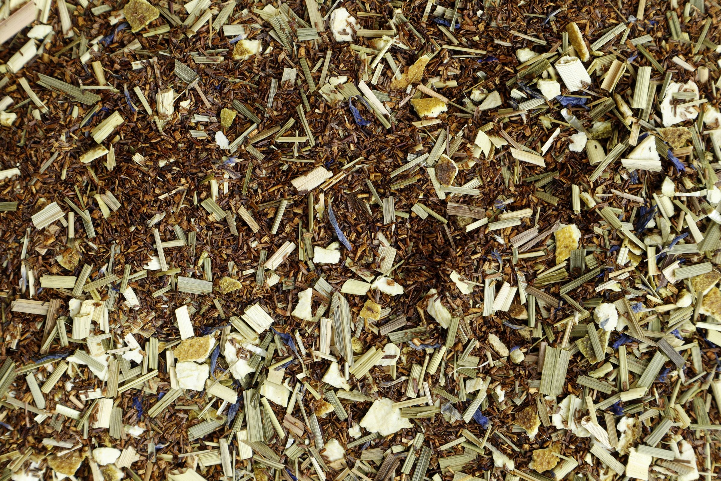 Rooibos pochází z listů rooibosového keře, který se tradičně pěstuje v Jižní Africe. Je známý svou jemnou a uklidňující chutí, která neobsahuje kofein, což z něj dělá ideální nápoj pro celodenní popíjení. Spojení s citronovou trávou a pomerančem dodává tomuto čaji svěží citrusový nádech, který vás povzbudí a osvěží v jakékoli části dne.