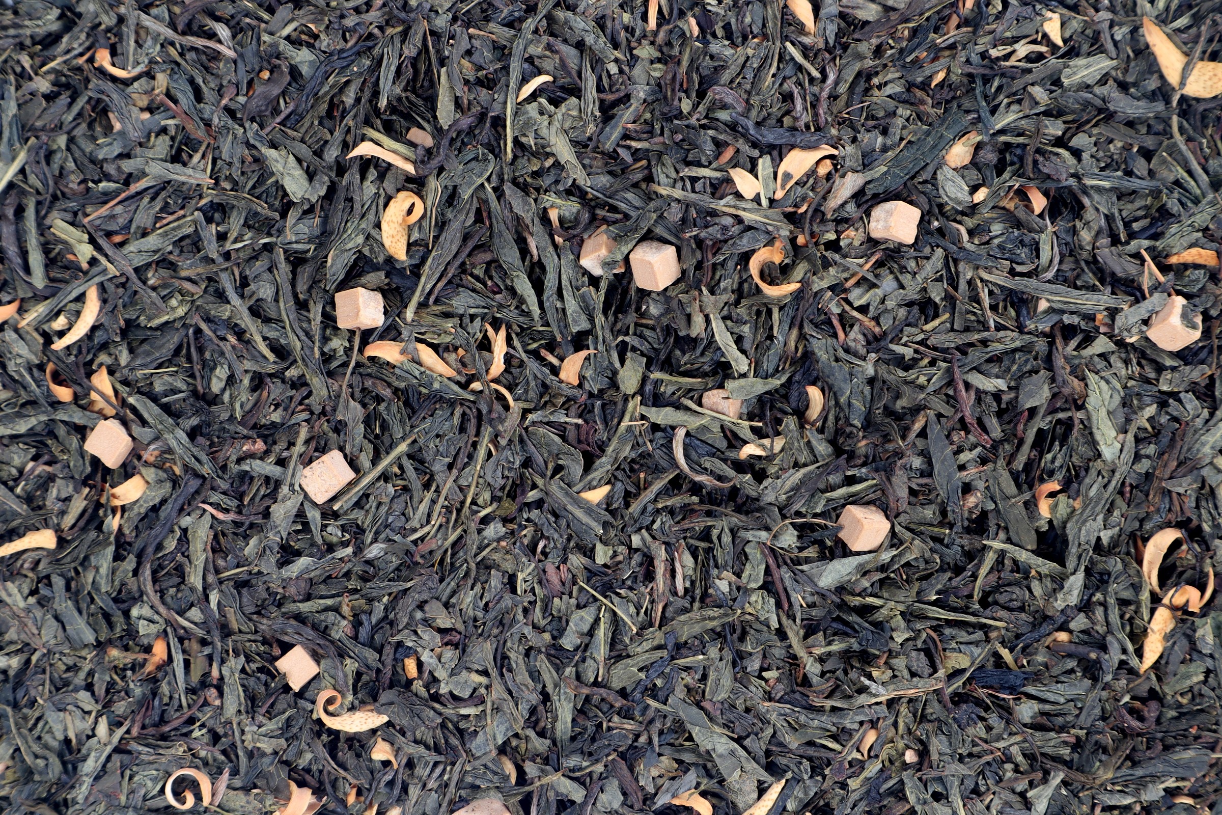 zelený čaj, karamelové kostky (SLAZENÉ KONDENZOVANÉ MLÉKO, cukr, glukózový sirup, MÁSELNÝ TUK, sorbitolový sirup, emulgátor: mono- a diglyceridy mastných kyselin) (8 %), pomerančové květy, aroma.