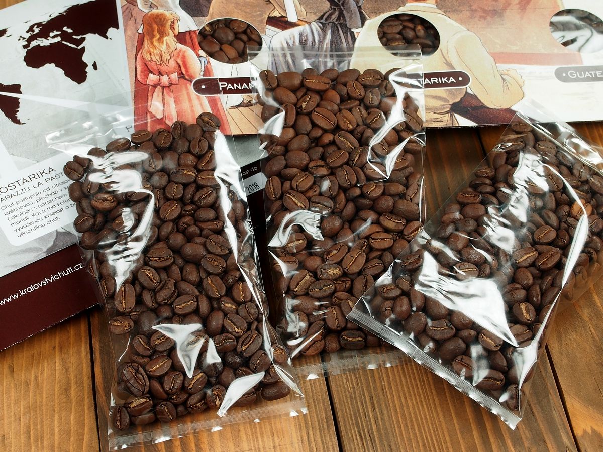 Balení obsahuje od každého druhu 50 gramů zrnkové nemleté kávy. Celkem tedy 150 gramů kávy.