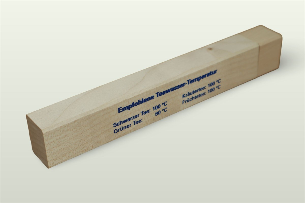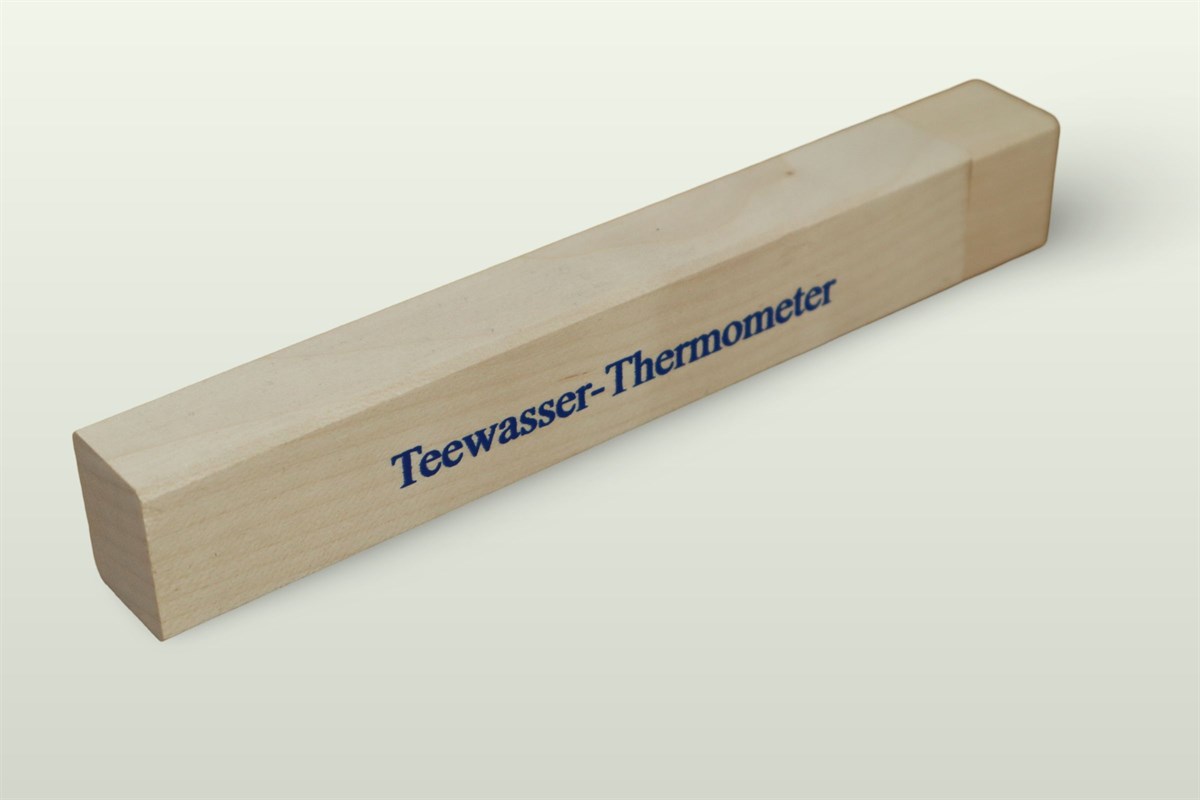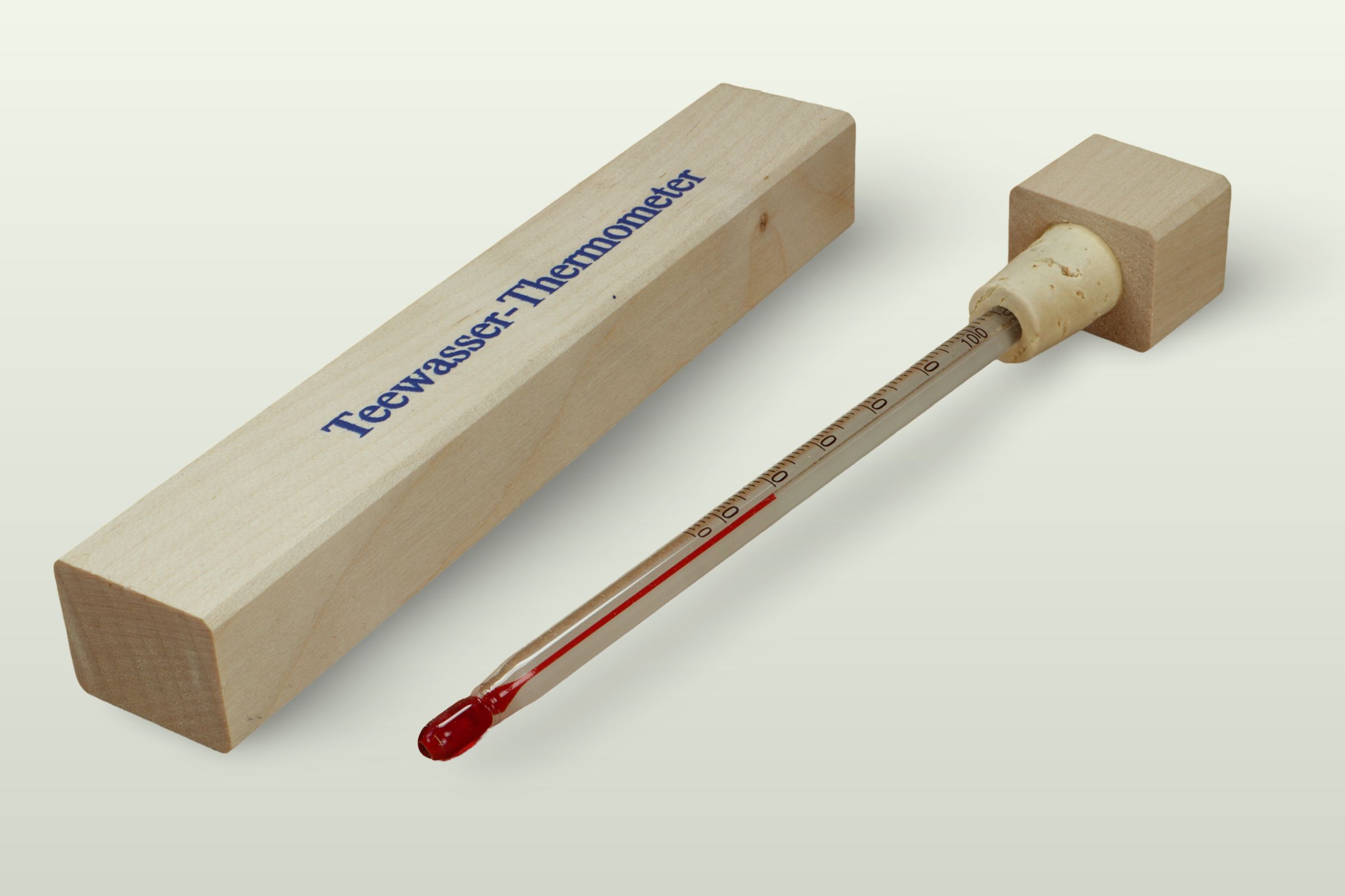 Tento teploměr je skvělý pomocník pro každého milovníka čaje, protože pro správnou přípravu čaje je důležité sledovat přesnou teplotu vody, ve které chceme čaj louhovat. Teploměr měří teplotu od -10 do +110 °C. Má červený velmi dobře čitelný ukazatel teploty. Na horním konci je opatřený dřevěným držadlem, takže se při měření dobře drží a nehrozí popálení. Horní část měřící trubice je opatřena korkovým chráničem, o který můžeme bez obav teploměr opřít.