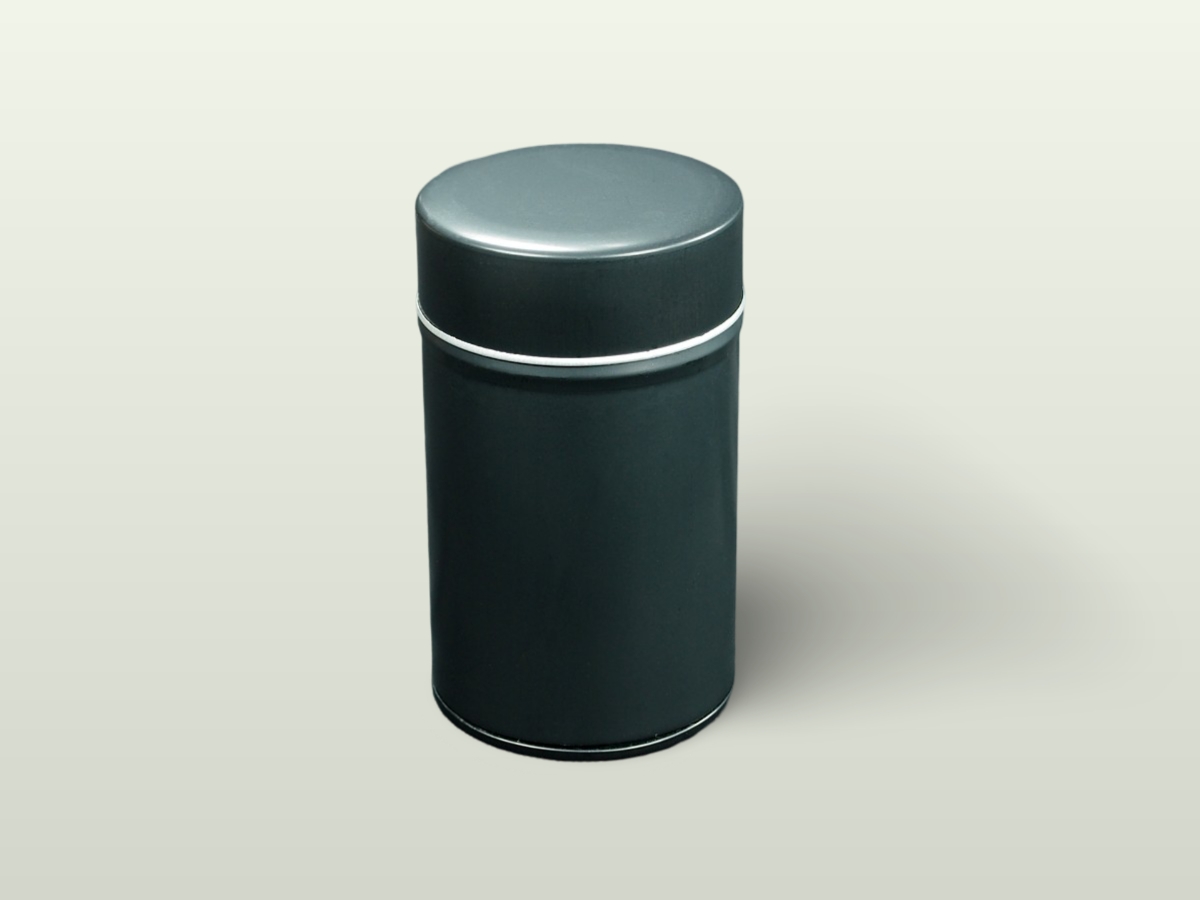 Malá černá plechová dóza s matným povrchem a s dvojitým víčkem. Vnitřní víčko hermeticky chrání obsah dózy, který tak dlouho vydrží čerstvý. Dózička je vhodná na čaj, kávu, koření, bylinky a další sypký sortiment.