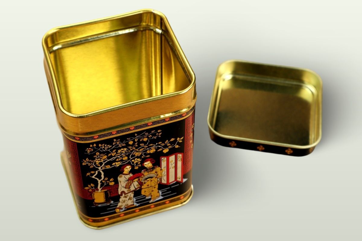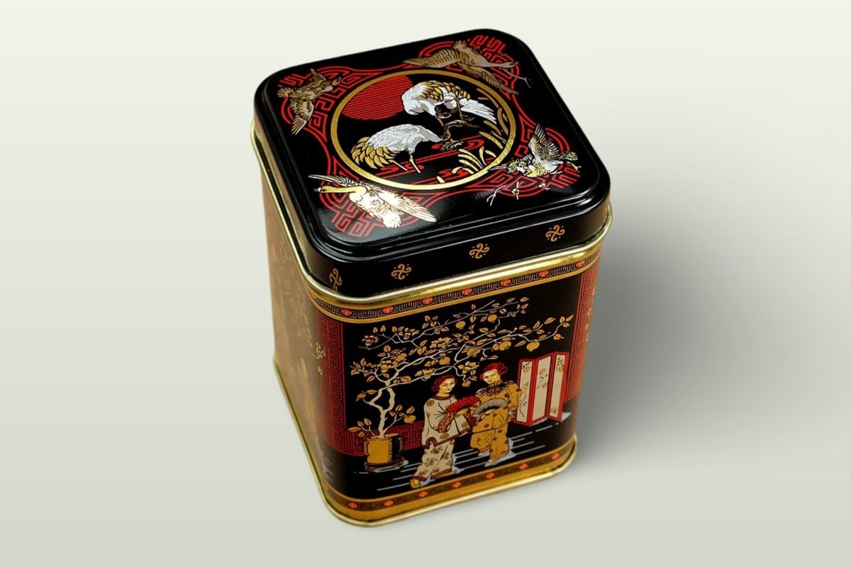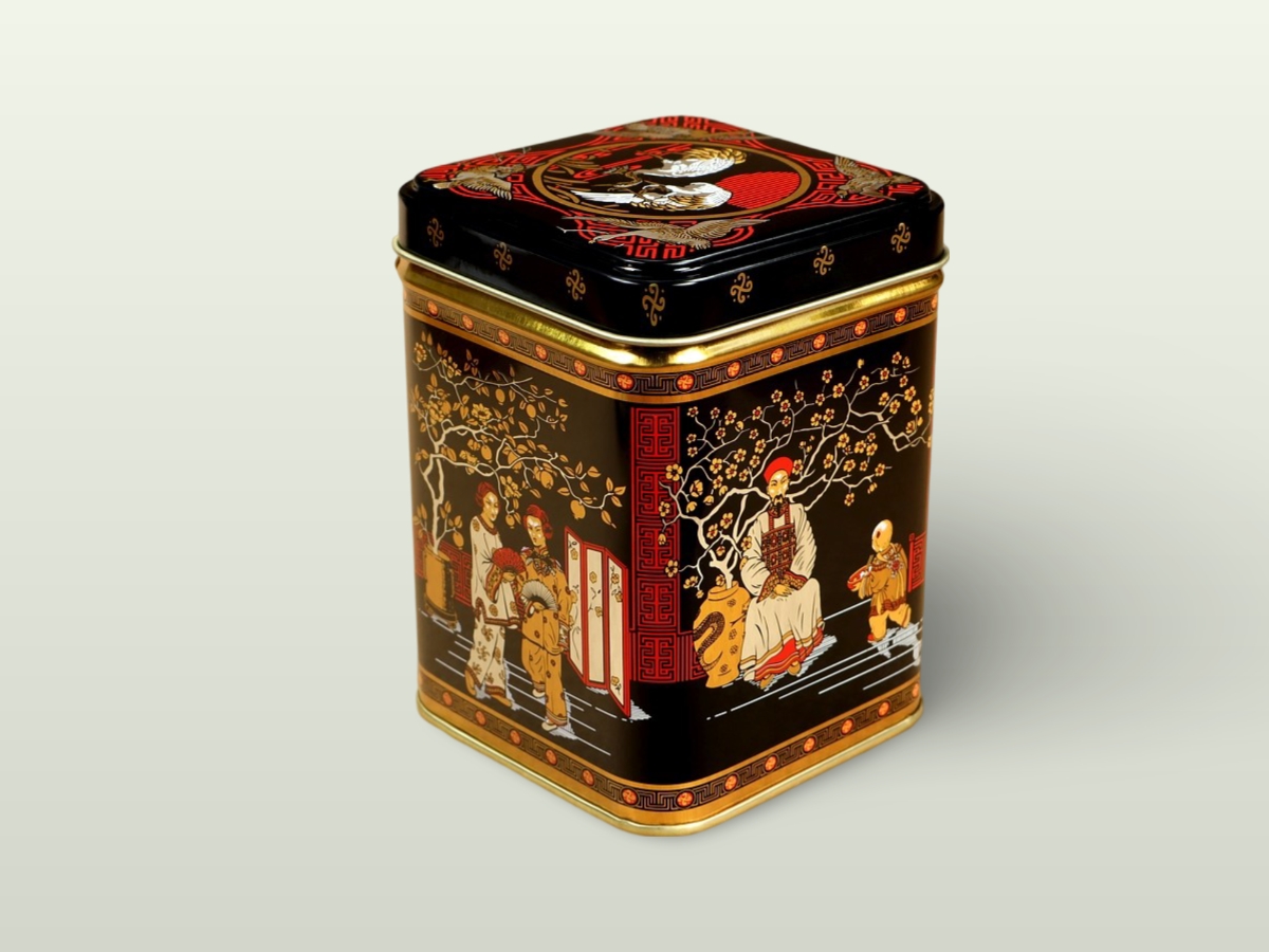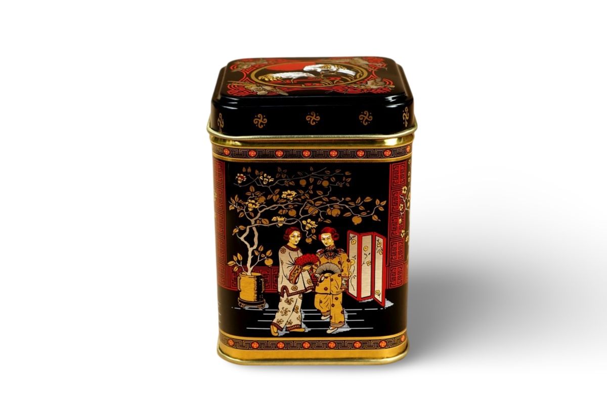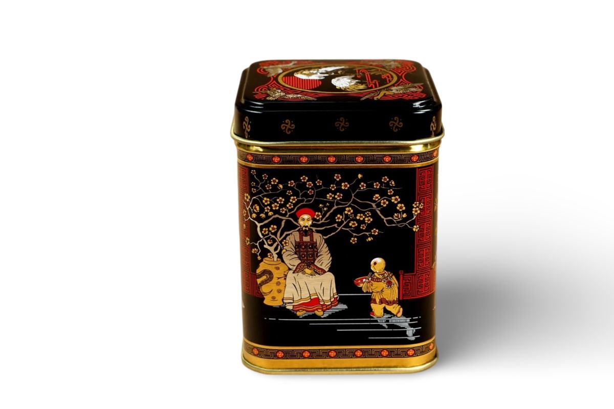 Malá kovová dózička s krásným orientálním designem v čajovém stylu. Do dózičky se vejde přibližně 50 gramů čaje.