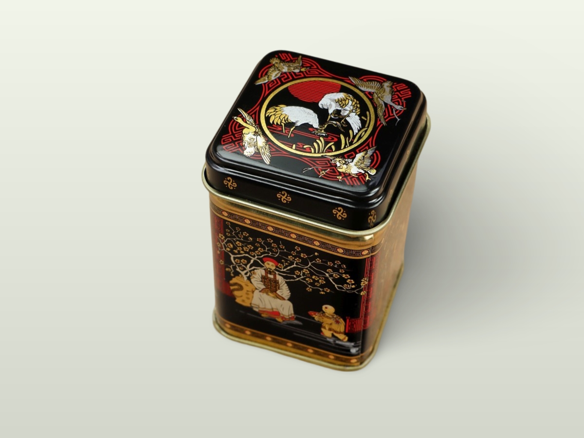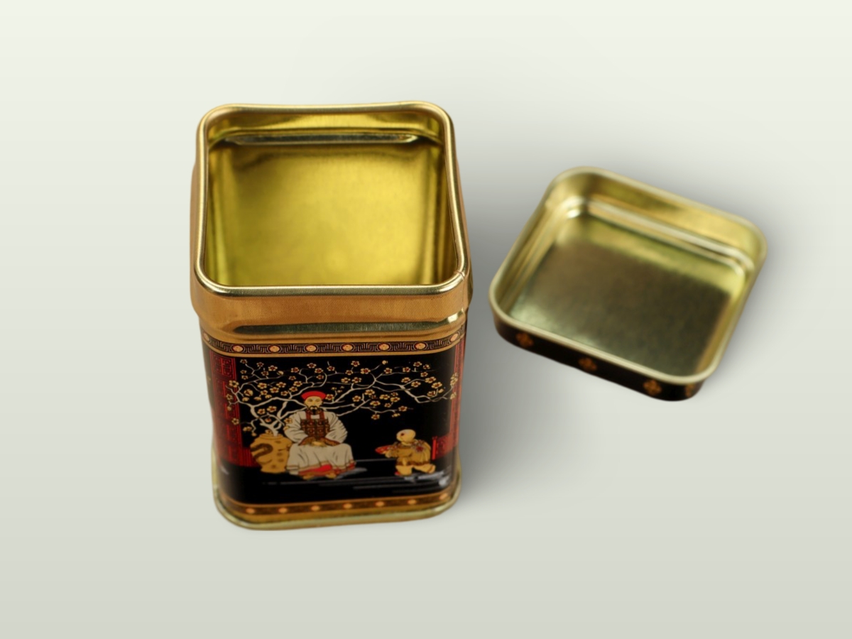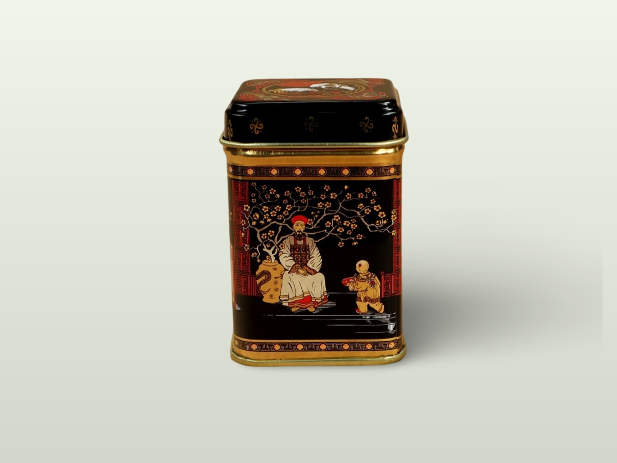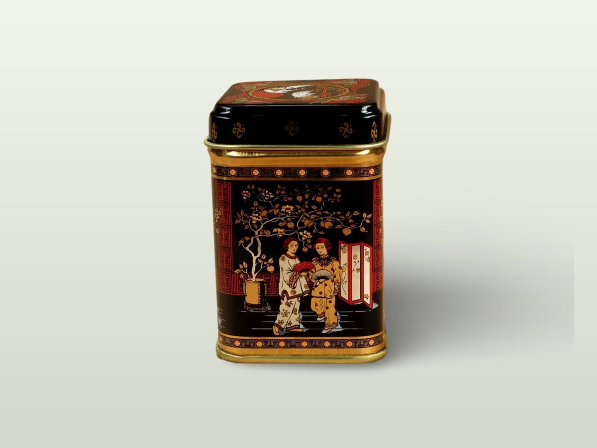 Maličká kovová dózička s krásným orientálním designem v čajovém stylu. Do dózičky se vejde přibližně 20 gramů čaje.