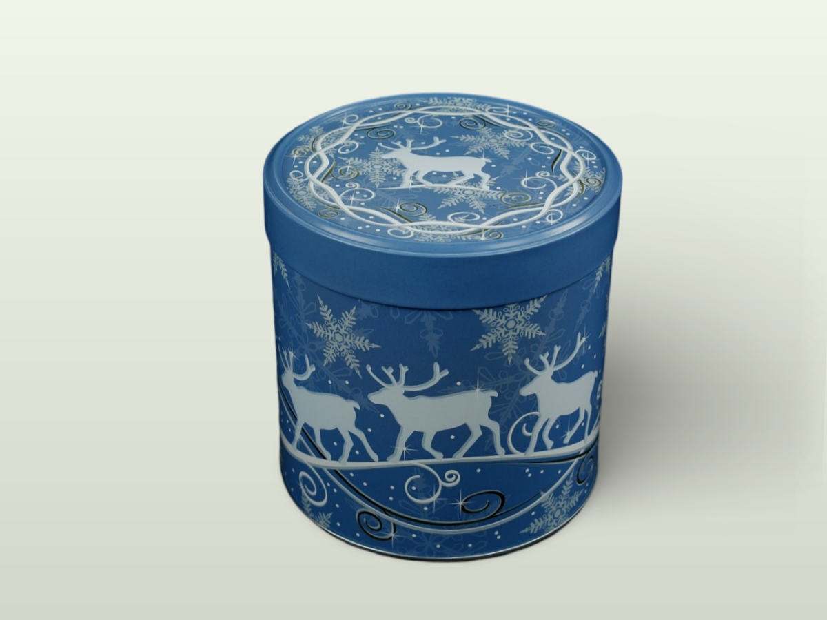 Kovová dóza s klasickám severským vánočním motivem sobů na bleděmodrém podkladu. Dóza má velké víčko se širokým lemem, takže velmi dobře těsní. Skvěle se proto hodí na uschování vánočních čajů, kávy, cukroví, ořechů a dalších dobrot.