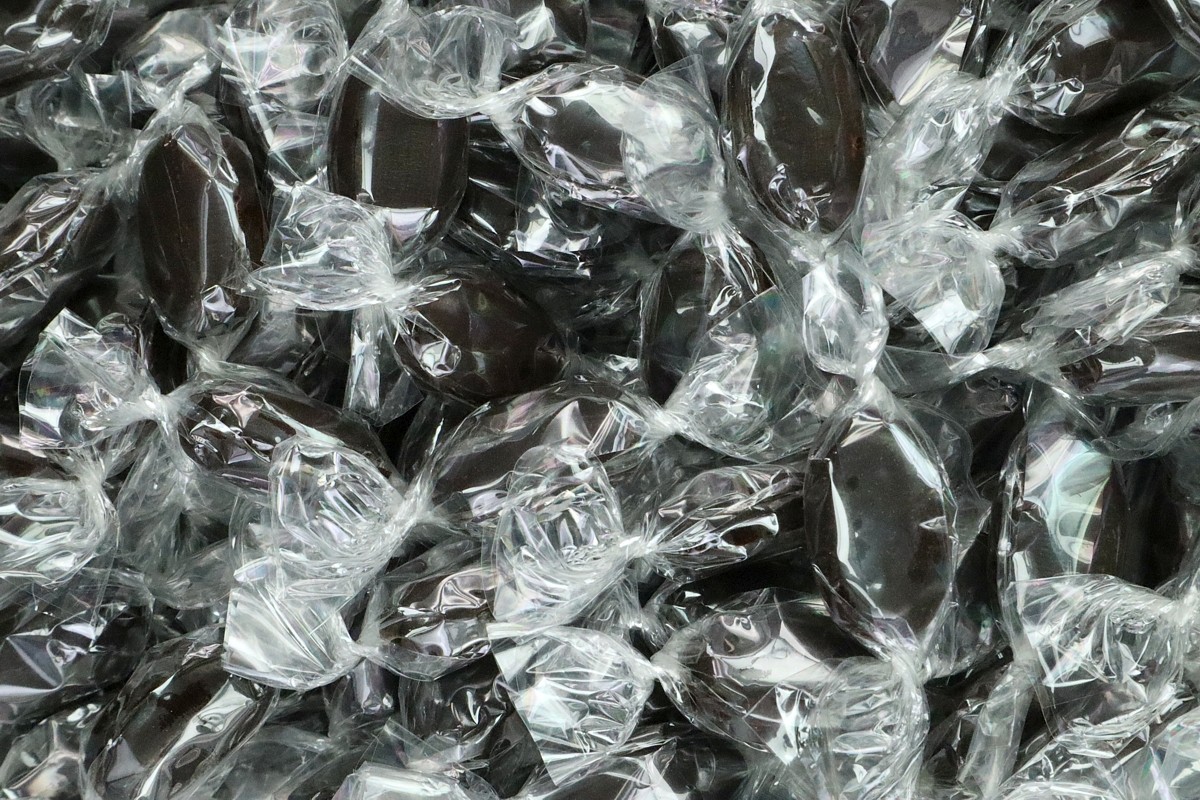 Bonbóny jsou baleny samostatně v celofánovém obalu.