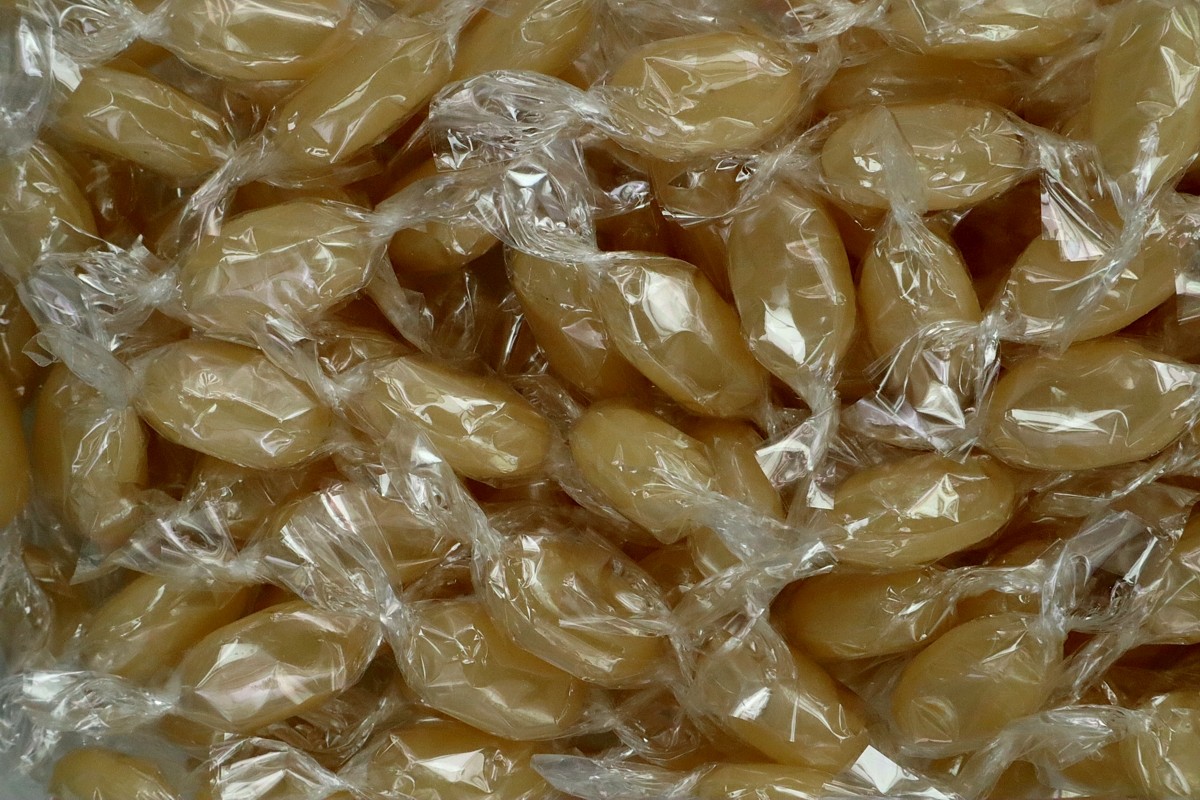 Bonbóny jsou baleny samostatně v celofánovém obalu.