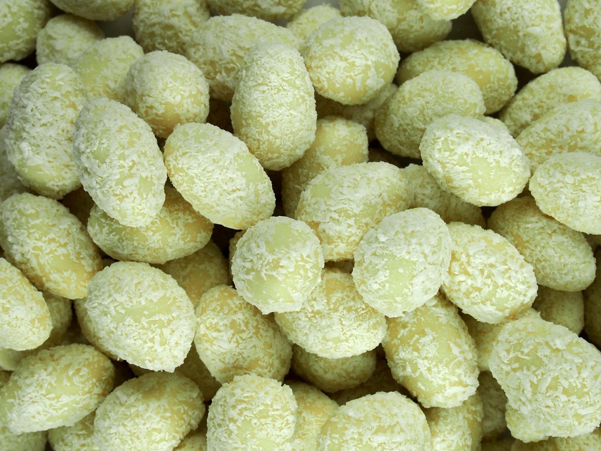 Křupavé mandle obalené v jemné bílé čokoládě, která je následně pokryta vrstvou strouhaného kokosu. Tato vynikající kombinace poskytuje bohatou a krémovou chuť bílé čokolády, která je doplněna příjemnou texturou a chutí kokosu. Mandle dodávají křupavost a své vlastní jemně oříškové tóny, což vytváří harmonickou směs chutí.