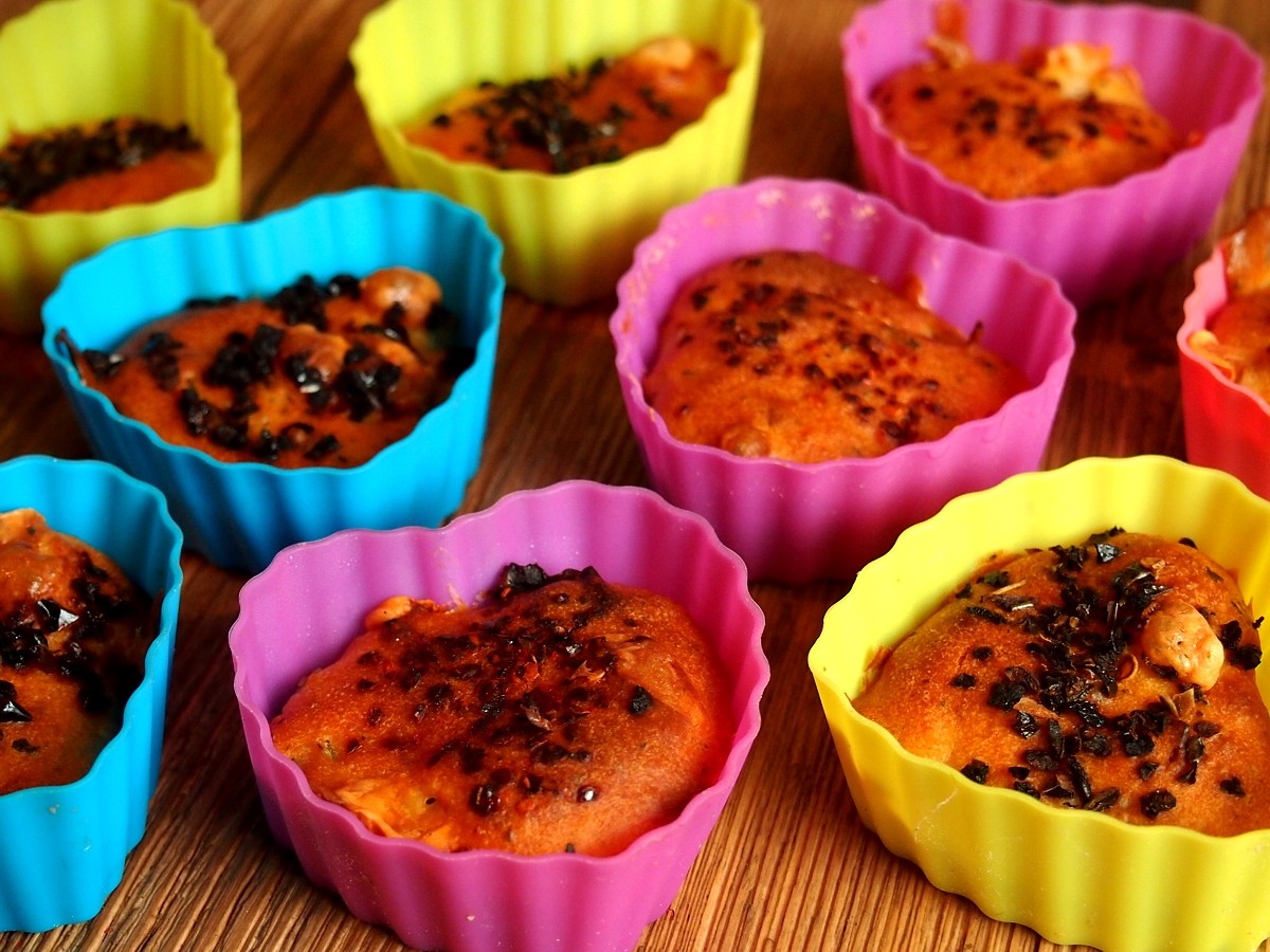 Těsto si připravíme a okořeníme bazalkou, sušenými rajčátky, přidáme mozzarellu a rozdělíme do košíčků. Do několika z nich vložíme olivu. Nasadíte ochranné prostředky, roušku, kombinézu, rukavice, plynovou masku, zkrátka co doma máte a pár kousků přiostříte chilli papričkou. Upozorňujeme, že chilli mleté habanero patří k nejpálivějším a doporučujeme se ho nedotýkat a rozhodně nevdechovat. Nebojte se možného infarktu, pečením se smrtelná pálivost změní na pikantní ostrý šleh. Povrch jednotlivých srdíček zdobíte střídavě paprikou červenou, zelenou, chilli drcené a sušená rajčátka. Přejeme příjemnou zábavu a hlavně dobrou chuť!