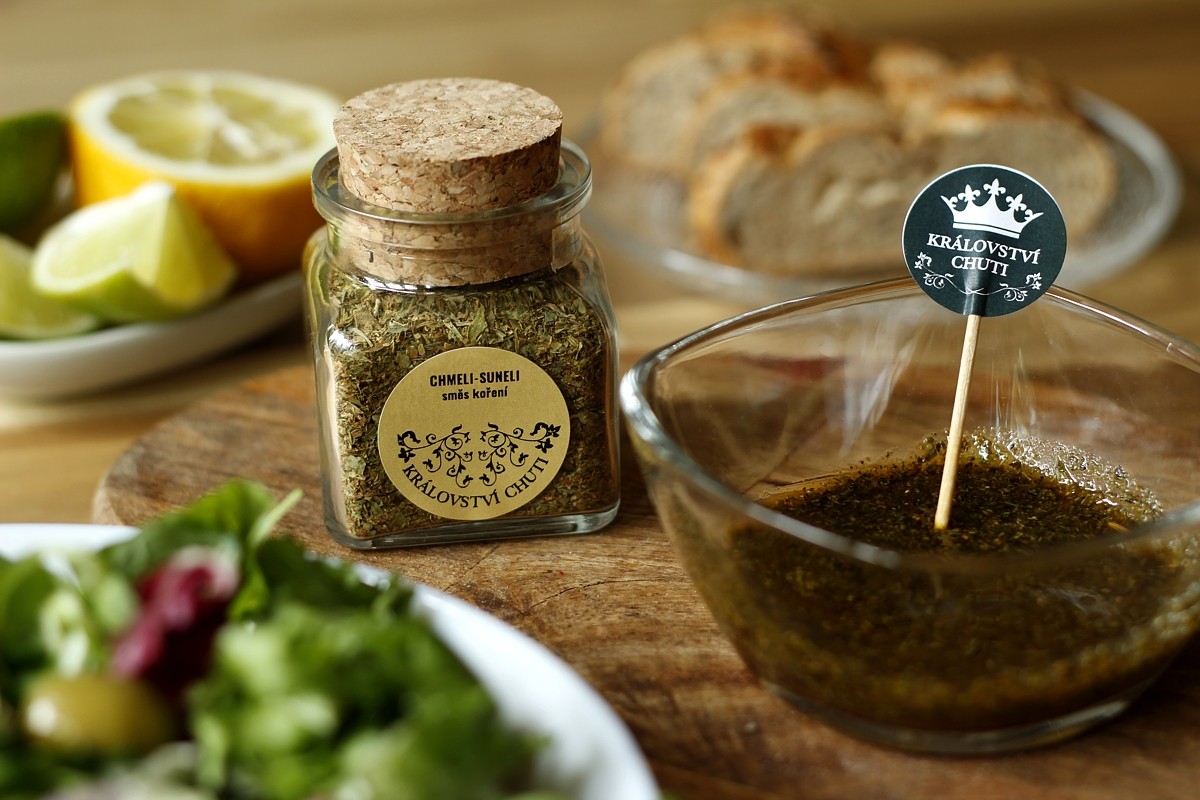 Drsné kavkazské pláně jsou pravý opak této jemné bylinkové zálivky na zeleninové saláty, která je připravená z tradičního arménského koření Chmeli-Suneli.