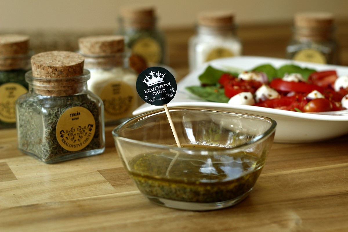 Pro přípravu zálivky smíchejte 1 polévkovou lžíci vaší směsi koření se 4 lžícemi olivového oleje, 1 lžíce jablečného octa, 1 lžící hořčice a čajovou lžičkou cukru.