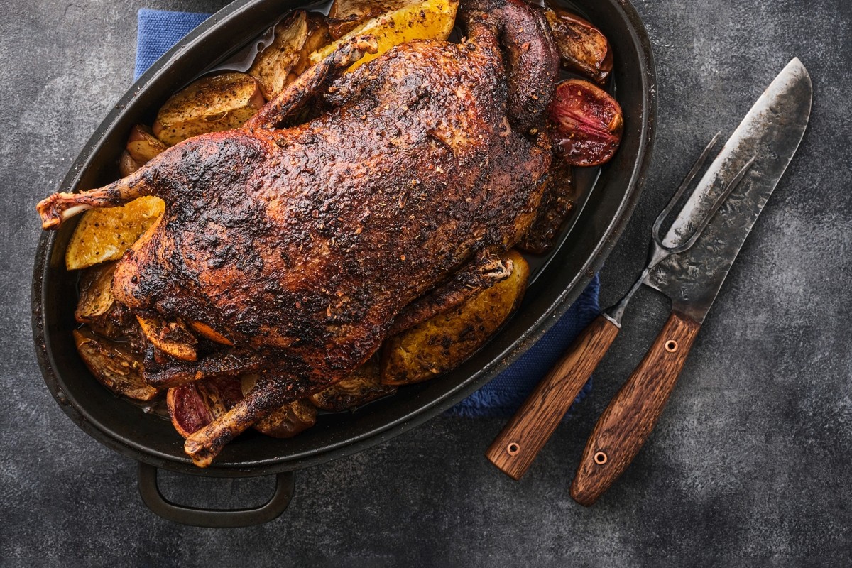 Až se venku začne brzy šeřit a ochlazovat, není nic lepšího než se zavřít doma s vůní pečené husy. Tento recept přináší klasickou husu na novou úroveň, s bohatou kombinací zimního koření, která promění klasické jídlo v něco výjimečného.