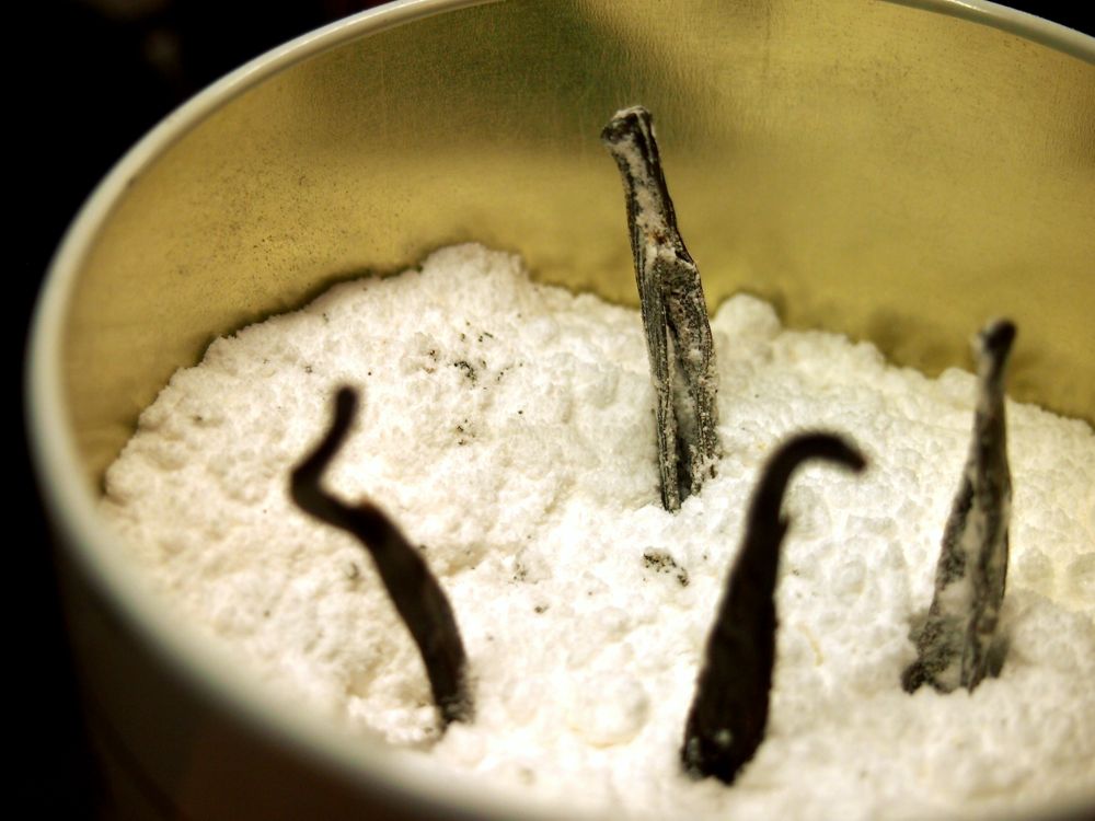 Vanilkový lusk podélně naříznete a lžičkou nebo nožem vyškrábněte semínka. Semínka vanilky smíchejte s cukrem a nasypte do dózy. Do cukru ještě zapíchněte vanilkové lusky a jeden až dva týdny nechte stát. Zhruba ob den dózu s cukrem protřepte, ať se vanilková chuť rovnoměrně prolne.