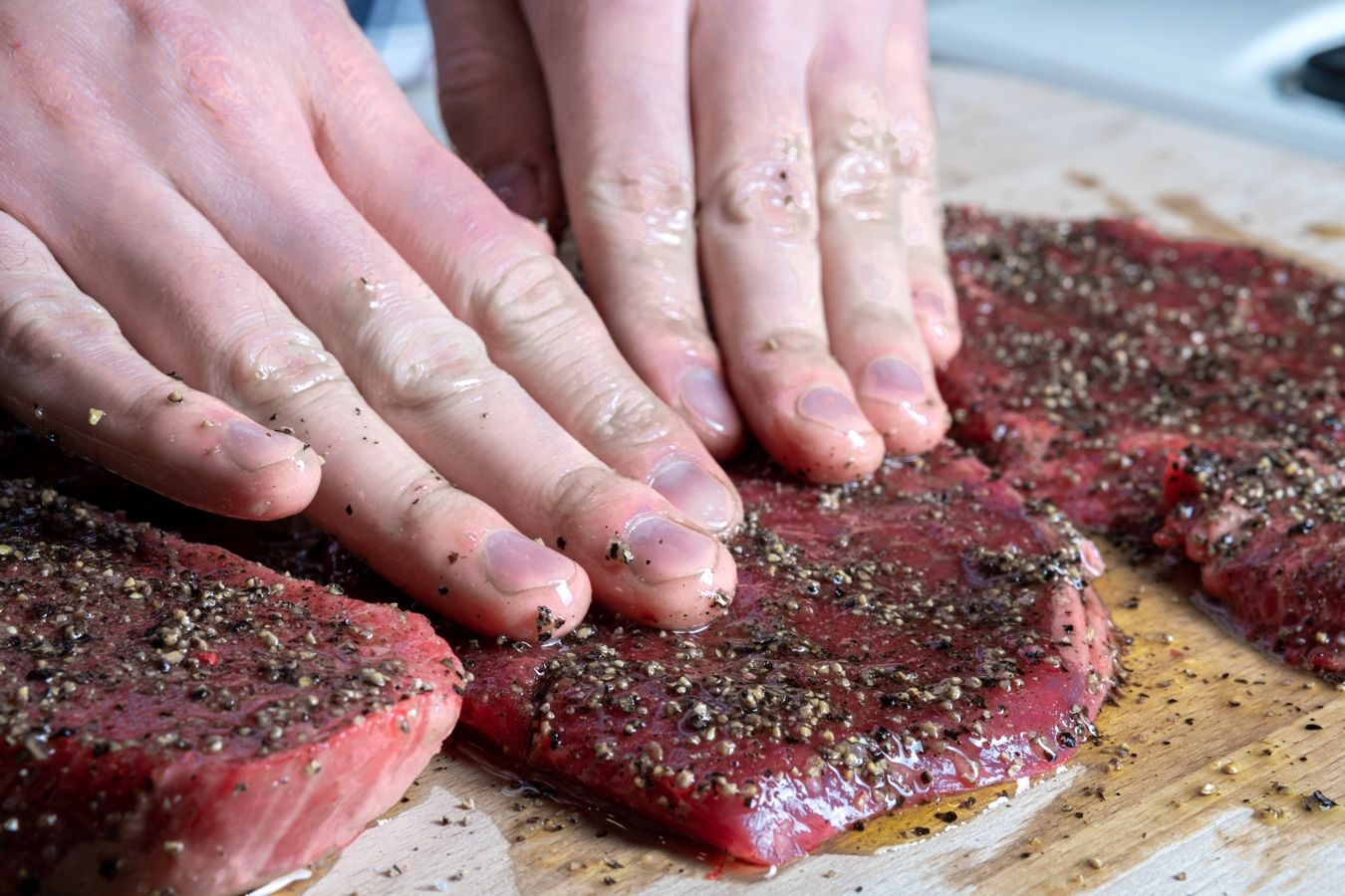 - Rub rovnoměrně vetřeme do masa z obou stran a pořádně prsty promasírujeme.