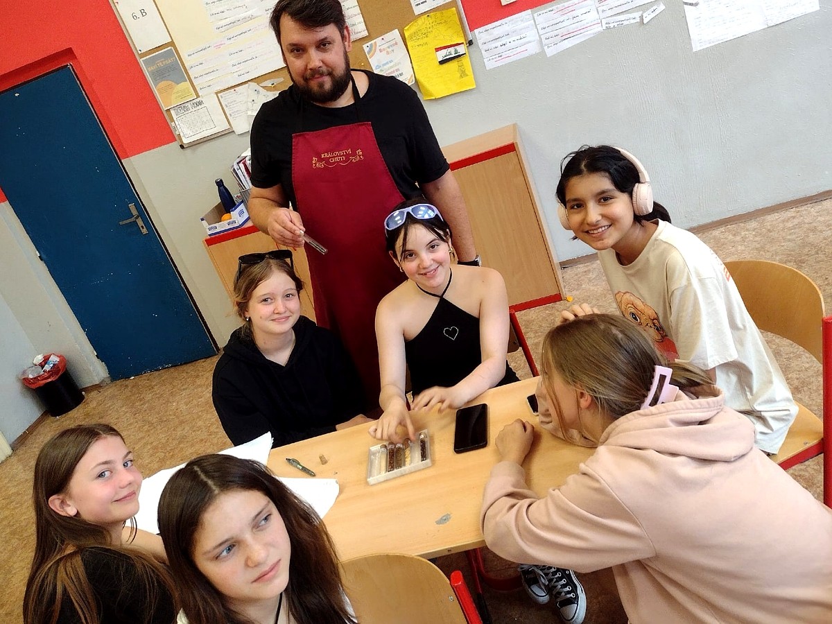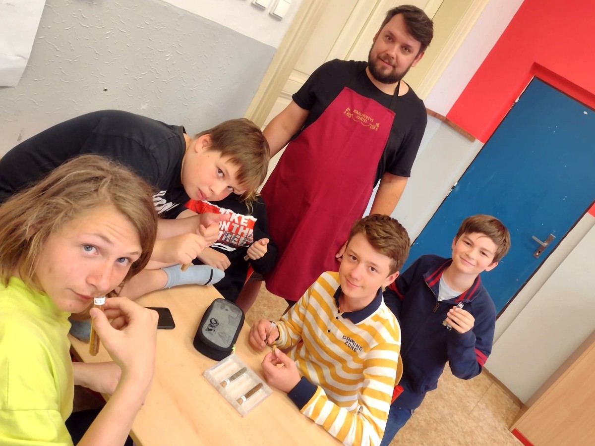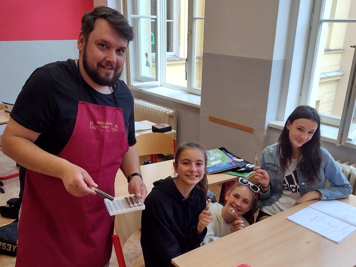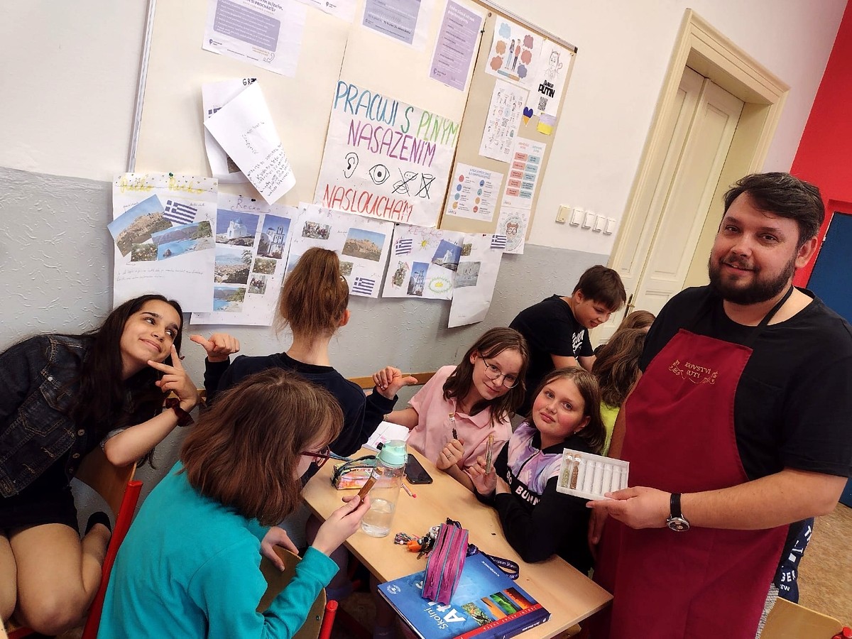 Náš kolega Kamil se přednášky s nadšením ujal a pro děti připravil pracovní listy a zkumavky s různým kořením z celého světa. Děti se rozdělily do skupinek a Kamil jim o každém koření vyprávěl kde roste, do jakých jídel a v jakých zemích se používá a ještě přidal pár zajímavostí. Děti pak podle hmatu a čichu jednotlivá koření rozpoznávaly a na závěr vyplnily pracovní listy. Za správné zpracování získaly sladkou odměnu, kterou jsme jim připravili.